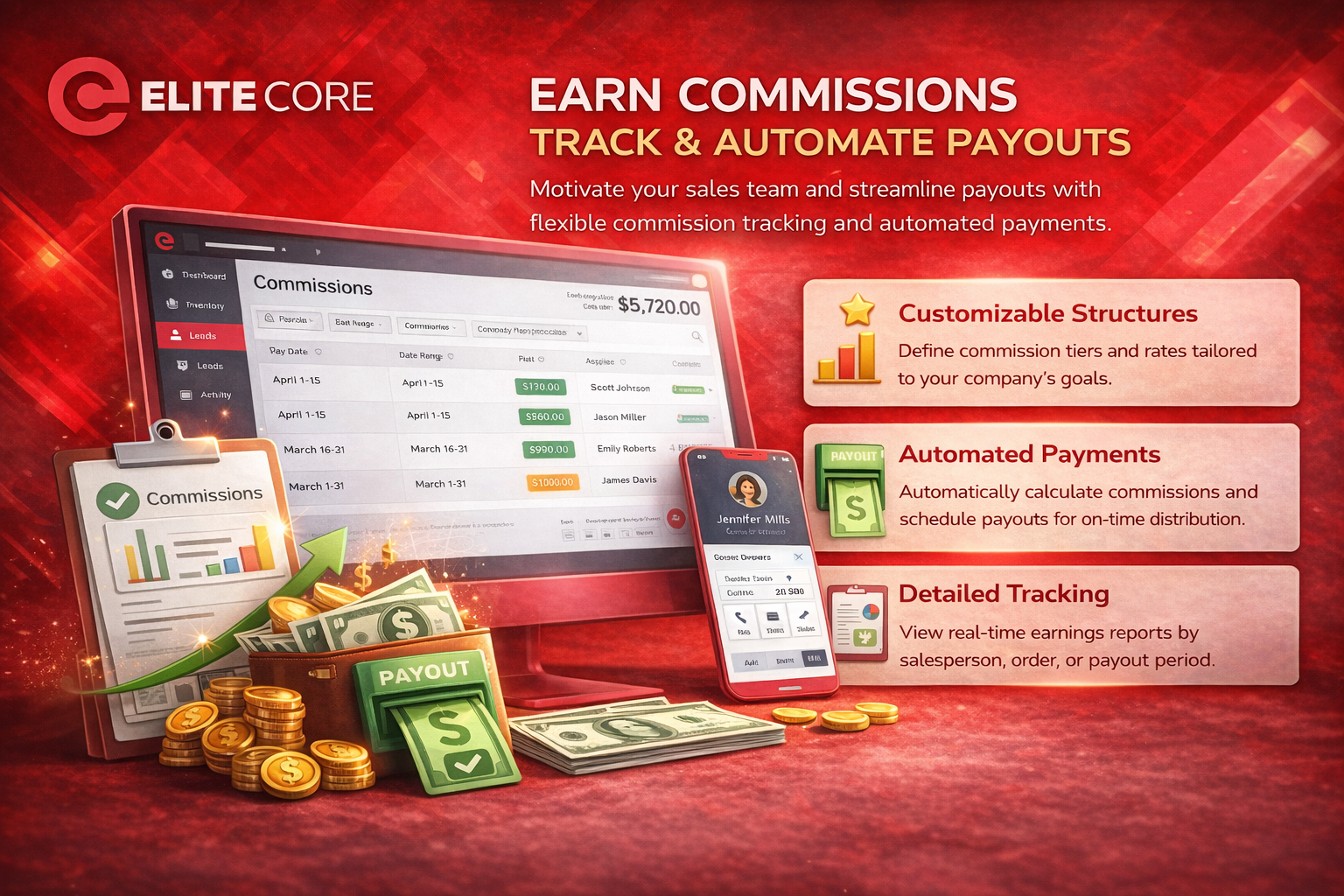 Elite Core ties commissions directly to sales activity and order data, giving teams accurate payouts, clear reporting, and full transparency – without spreadsheets or manual reconciliation.